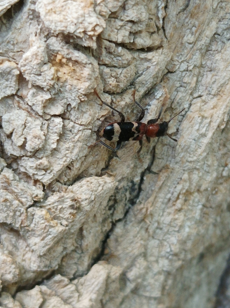 А вот зачем муравьежук такой странный - не вполне понятно. С муравьями он напрямую не связан - охотится на кладки, личинок и куколок других жуков - особенно короедов и граверов. То есть уничтожает вредителей леса и потому считается весьма полезным товарищем. Зачем ему муравьиный прикид? Может быть чтобы ему не мешали, когда он патрулирует вверх-вниз по дереву, заглядывая в каждую трещинку коры. Муравьи-то делают почти то же самое.