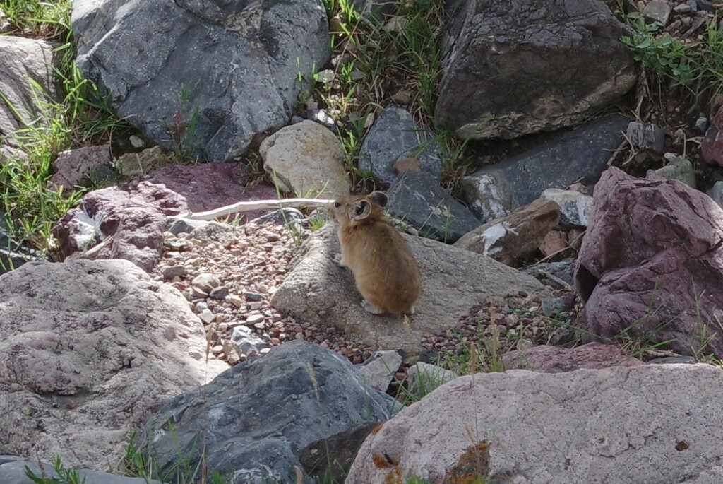 Палласова пищуха (Ochotona pallasii), она же - монгольская пищуха. Она не роет нор а прячется между камнями. Впрочем, прячется довольно условно, подпускает достаточно близко для моей, заточеной на ботанические нужды, близорукой оптики.