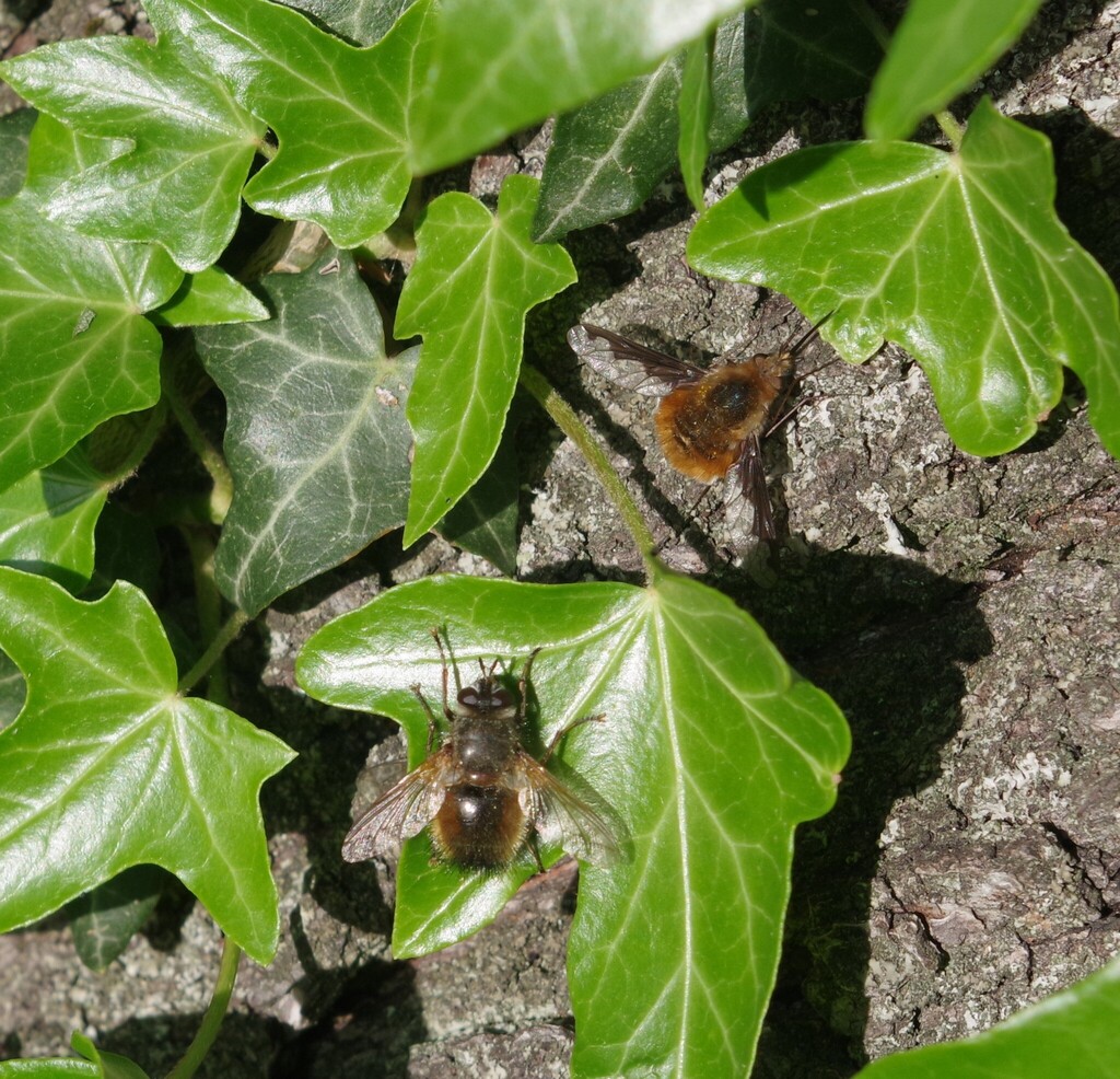 Ежемуха (Tachina) и Большое Жужжало (Bombylius major) в одном флаконе.